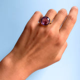 The yellow gold bezel setting incredibly enhances the brilliance of this amethyst.