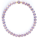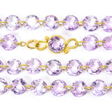 The cut amethysts, pierced and linked by fine gold rings, seem to float on the skin.