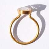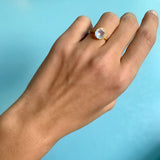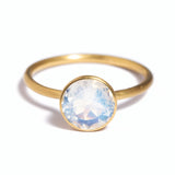 Its bezel setting enhances the iridescence of this rainbow moonstone.
