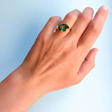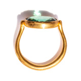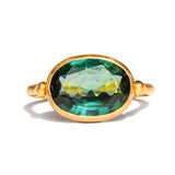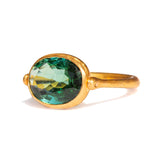 The bezel setting enhances the color and brilliance of this green tourmaline.