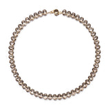 Forming a row of stones, the quartz are cut, pierced and connected by fine gold rings.