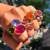 Chemicals can tarnish gold and change the color of some stones irreparably: perfume, chlorine from the swimming pool, household products, solvents, soaps, hairspray... The list is long. Hydroalcoholic gel is safe for gold but not for some stones, even moisturizing creams are not recommended.
