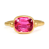 bezel setting highlights the intensity of the color of this pink tourmaline.