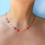 This necklace in yellow gold and four colors of enamel is part of the new Flying Kiss collection.