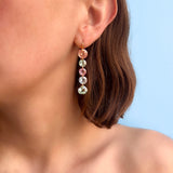 Cut, pierced and linked by fine gold rings, the stones seem to float.