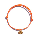 The pumpkin pendant is worn around the neck or on the wrist, on a chain or a cord.