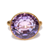 Le serti clos en or jaune met incroyablement en valeur l'éclat de cette améthyste.