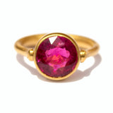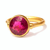 Le serti clos met incroyablement en valeur la couleur intense de cette rubellite.