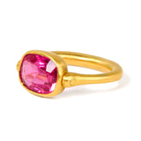 Le serti clos souligne l'intensité de la couleur de cette tourmaline rose.