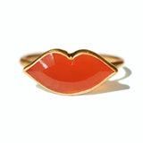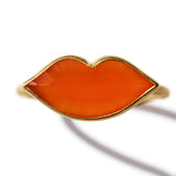La cornaline est taillée à la main. Les facettes donnent à cette bouche un relief pulpeux.