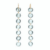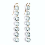 Les boucles d'oreilles Rivières sont composées de sept quartz verts taillés, percés et reliés par de fins anneaux d'or.