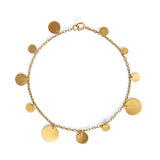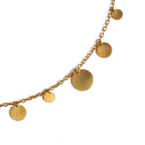 Suspendues à une chaîne fine, les paillettes d'or virevoltent et capturent la lumière.
