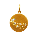 Cette médaille sertie de cinq diamants se porte autour du cou ou au poignet, sur une chaîne ou un cordon.