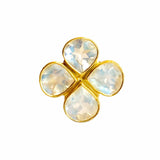 L'iridescence de la pierre de lune et la douceur de l'or jaune.