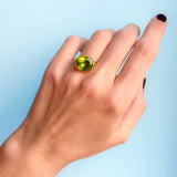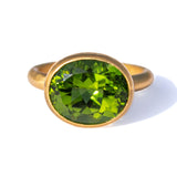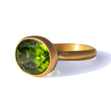 Le serti clos met incroyablement en valeur la couleur éclatante de ce péridot.