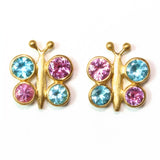 Composées de deux apatites et deux saphirs roses sertis d'or jaune, les boucles d'oreilles Titly sont idéales à porter au quotidien.