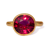 Le serti clos met incroyablement en valeur la couleur de cette rubellite.
