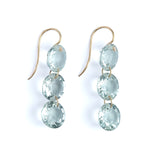 Les boucles d'oreilles Rivières sont composées de trois quartz verts taillés, percés et reliés par de fins anneaux d'or.