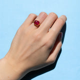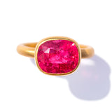 Le serti clos met en valeur l'éclat de ce superbe spinelle rouge.